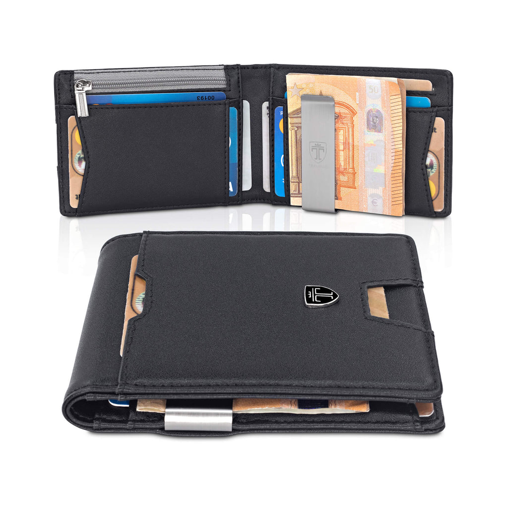STOCKHOLM – Der kompakte Herren-Geldbeutel in schwarzer Leder-Optik mit grauem Reißverschluss als Kontrast. Ausgestattet mit ausreichend Kartenfächern, einer Geldscheinklammer aus Edelstahl und Münzfach gehen Sie keine Kompromisse zwischen Größe, Kapazität und Verarbeitung ein.